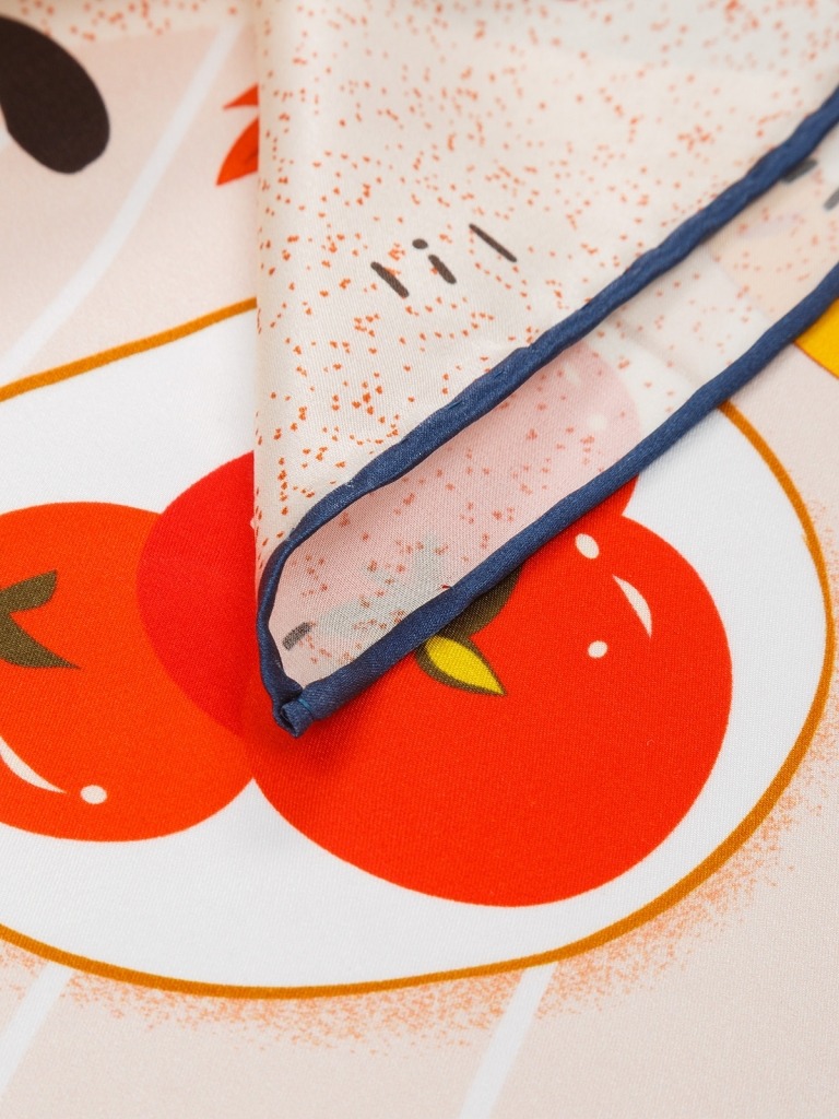 Платок с принтом из 100% шёлка. Тип плетения: Сатин. Размер: 53х53 см. Ручная подгибка.