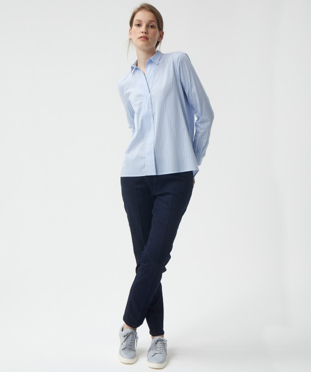 Повседневная оверсайз рубашка в широкую полоску. Втачной рукав полной длины с манжетой на пуговице. Рубашечный воротник, удлиненная спинка.