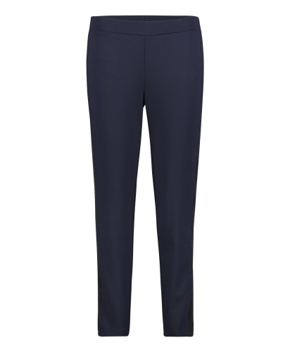 Брюки в спортивном стиле помогут угнаться за модой! Удобная средняя посадка, силуэт slim. Элегантный декор - вставка из сетчатого материала и тесьма с пайетками по бокам. Материал из вискозной смеси приятен к телу и обеспечивает комфорт. Эта модель - отличный выбор для прогулки по городу.