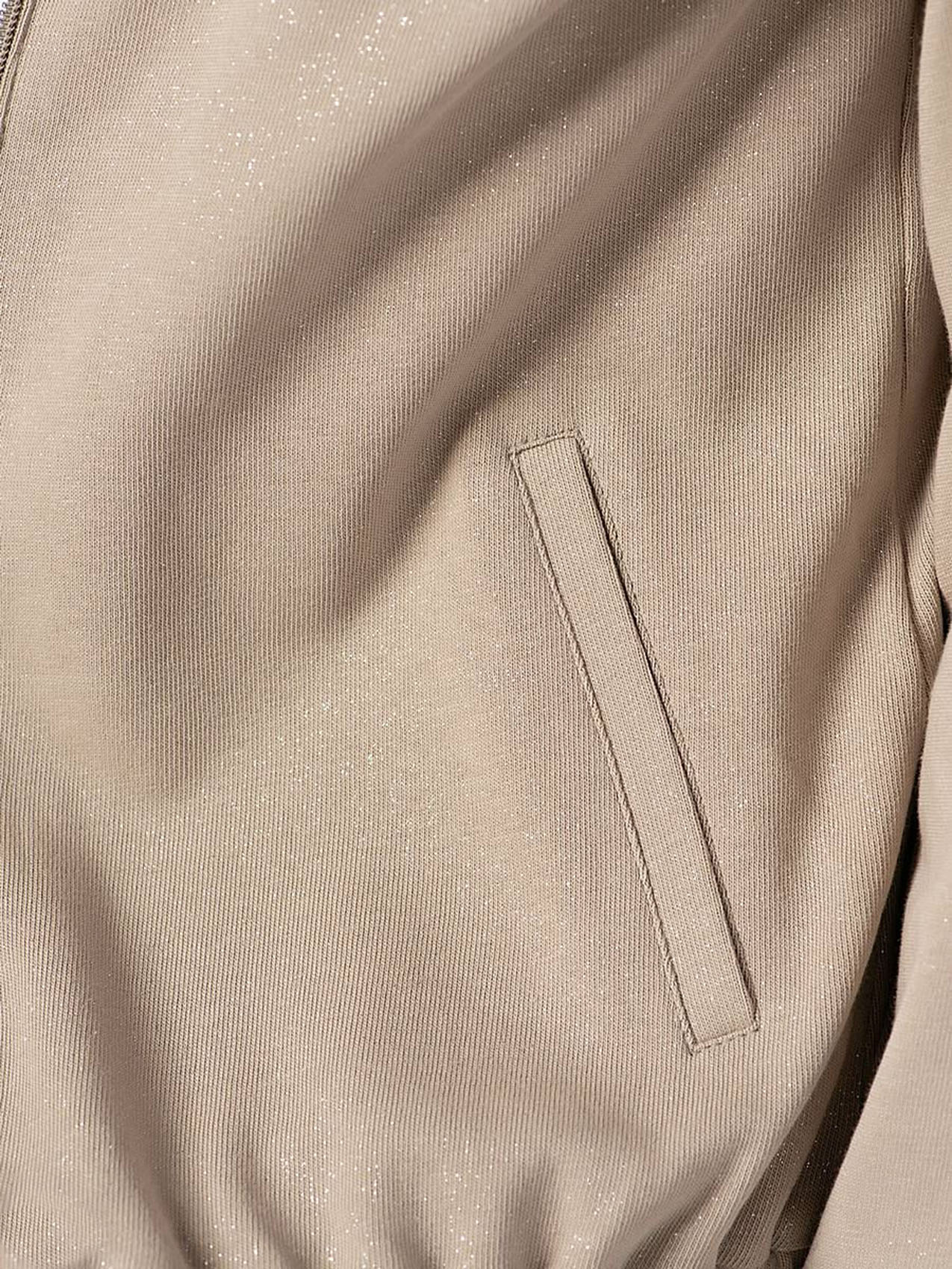 • слегка приталенный силуэт • круглый вырез горловины • длинные рукава реглан • застежка-молния • прорезные карманы • приятный хлопковый материал с примесью эластана • длина изделия по спинке: 65 см.