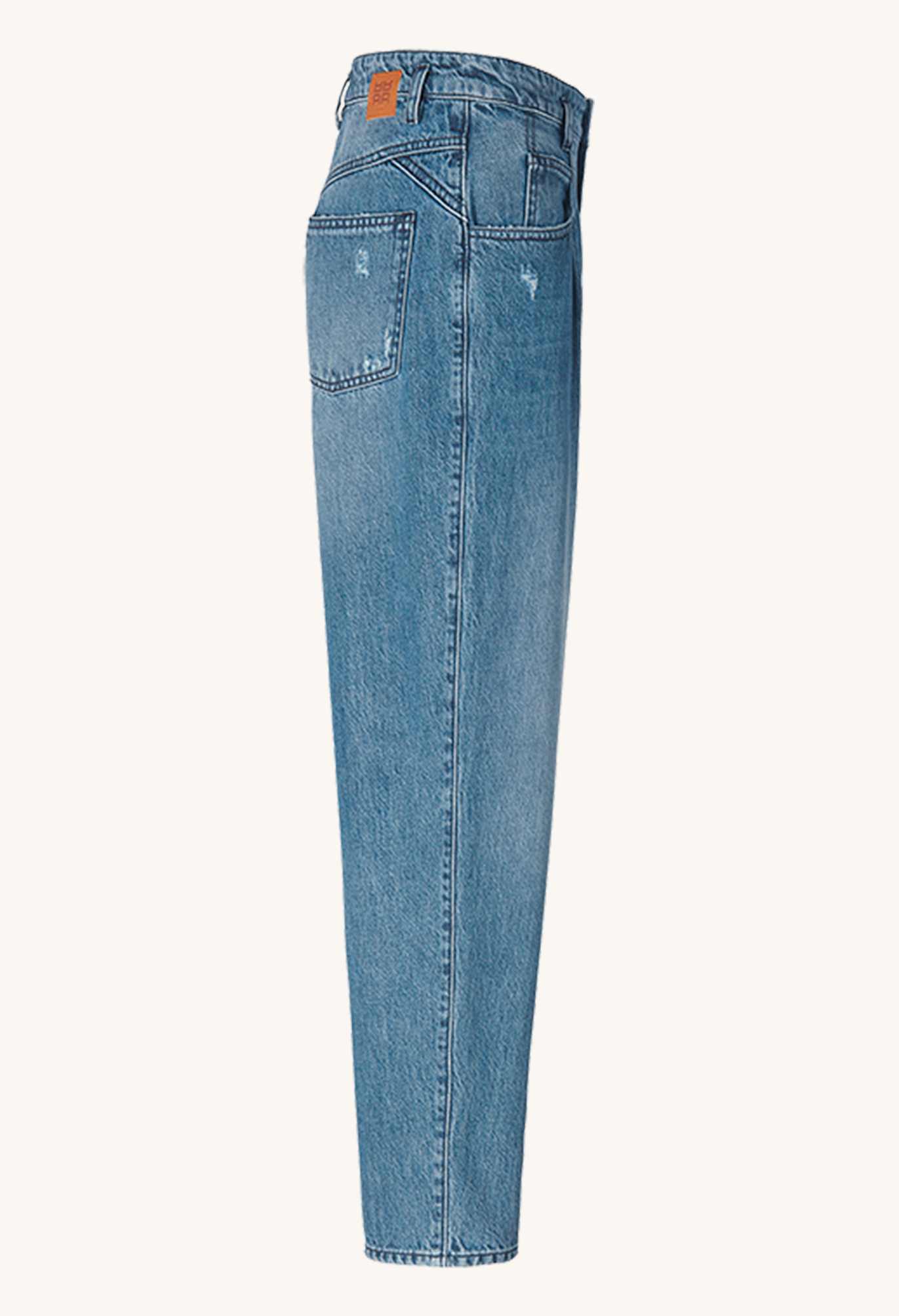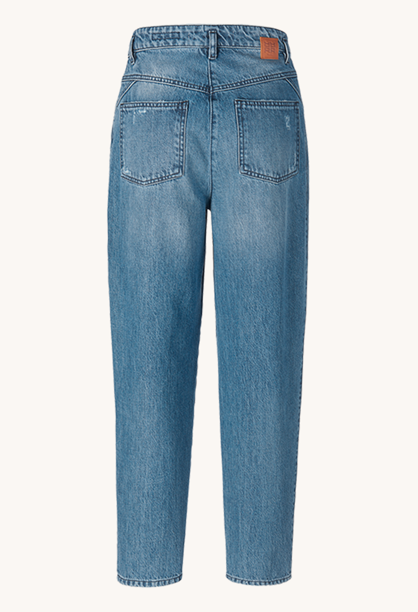 На сайте указаны российские размеры. Широкие вверху, узкие внизу: морковные брюки возвращаются в моду. Мы считаем, что это абсолютно правильно. При правильном сочетании с подходящей тканью этот тип брюк становится стильной модной вещью. Эти джинсы из повседневного аутентичного денима, не содержащего эластана, прекрасно выглядят в стиле ретро. Он предлагает вам сочетать его, например, с красивой блузкой. Конечно, свободно заправленный в пояс. Рост модели 177 см.