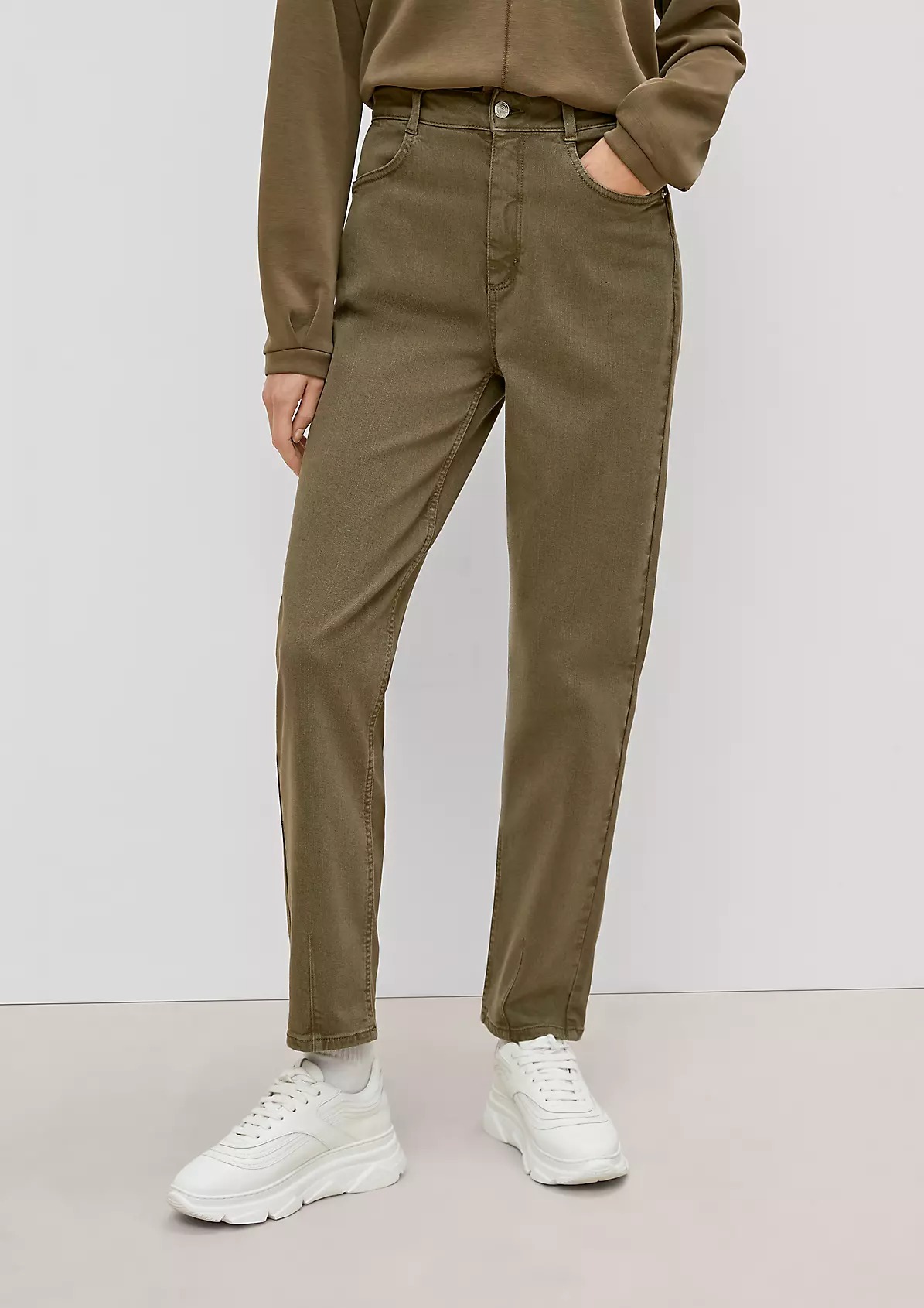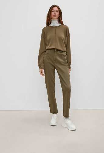 На сайте указаны российские размеры. Джинсы MOM обычной посадки на пуговице и потайной молнии. Длина штанины по внутренней стороне для размера 42 около 74 см. Рост модели 176 см.