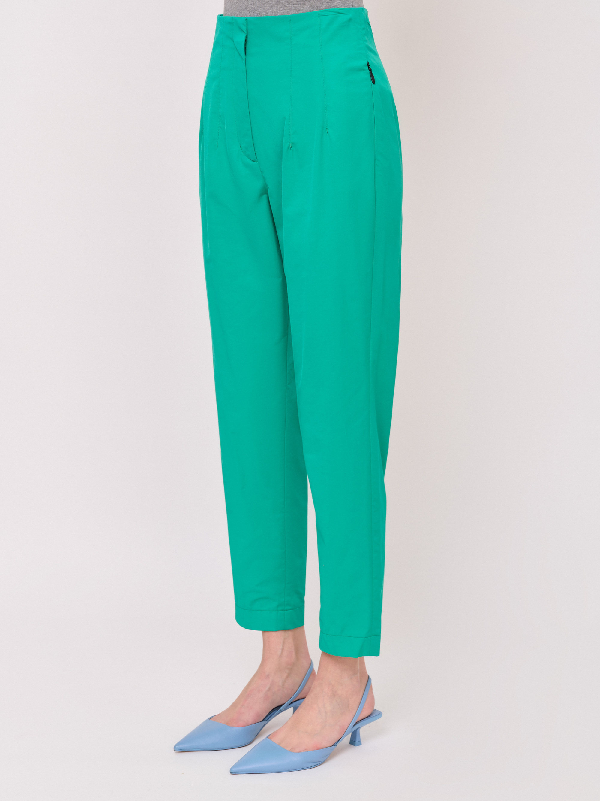 Детали: застежка молния, без рисунка, карманы в шве на молнии, крой брючин зауженный, посадка средняя. Длина брючин: 67 см.