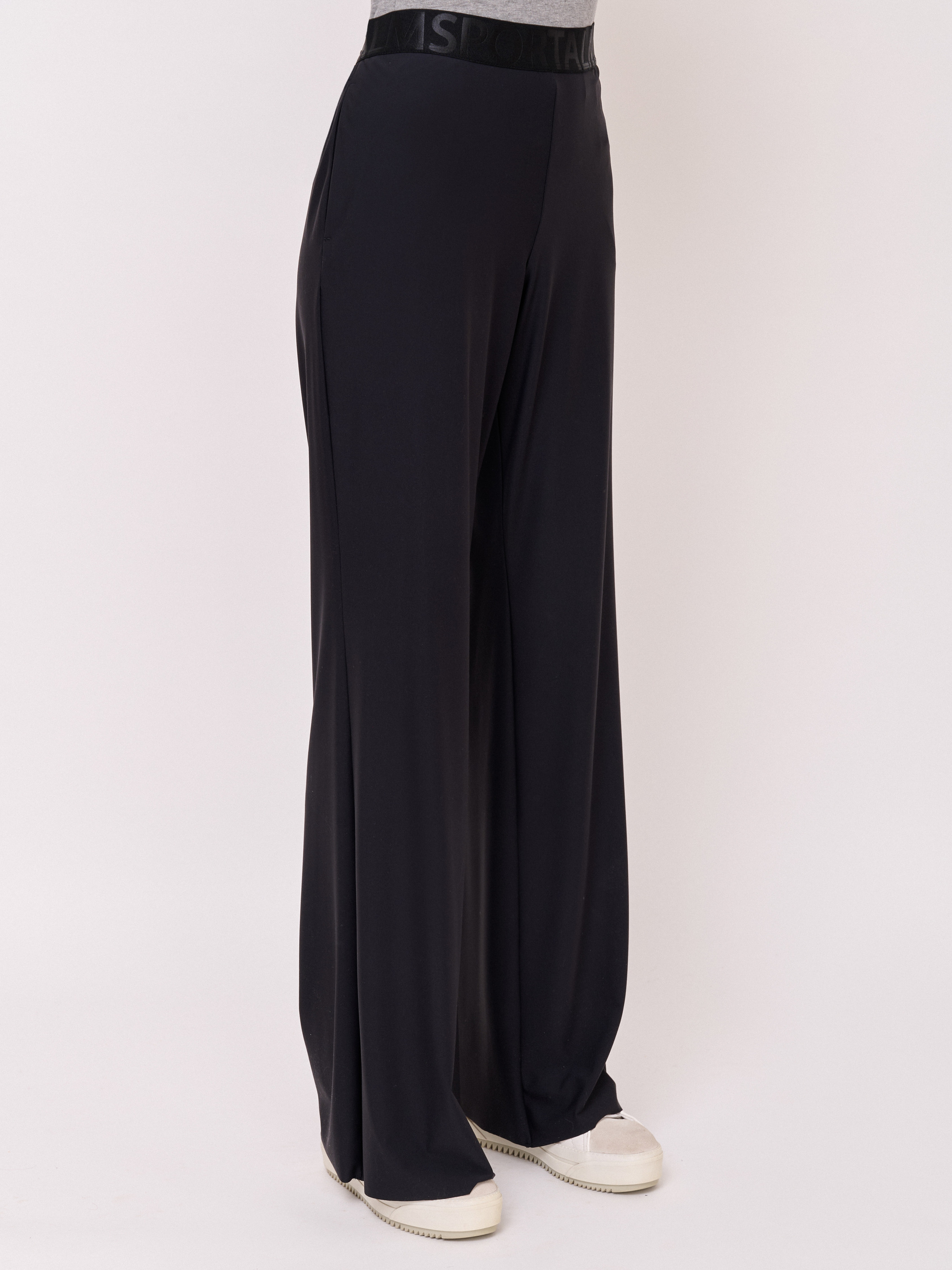 Детали: без застежки, пояс на резинке, без рисунка, карманы в шве, крой брючин широкий, посадка средняя. Длина брючин: 91 см.