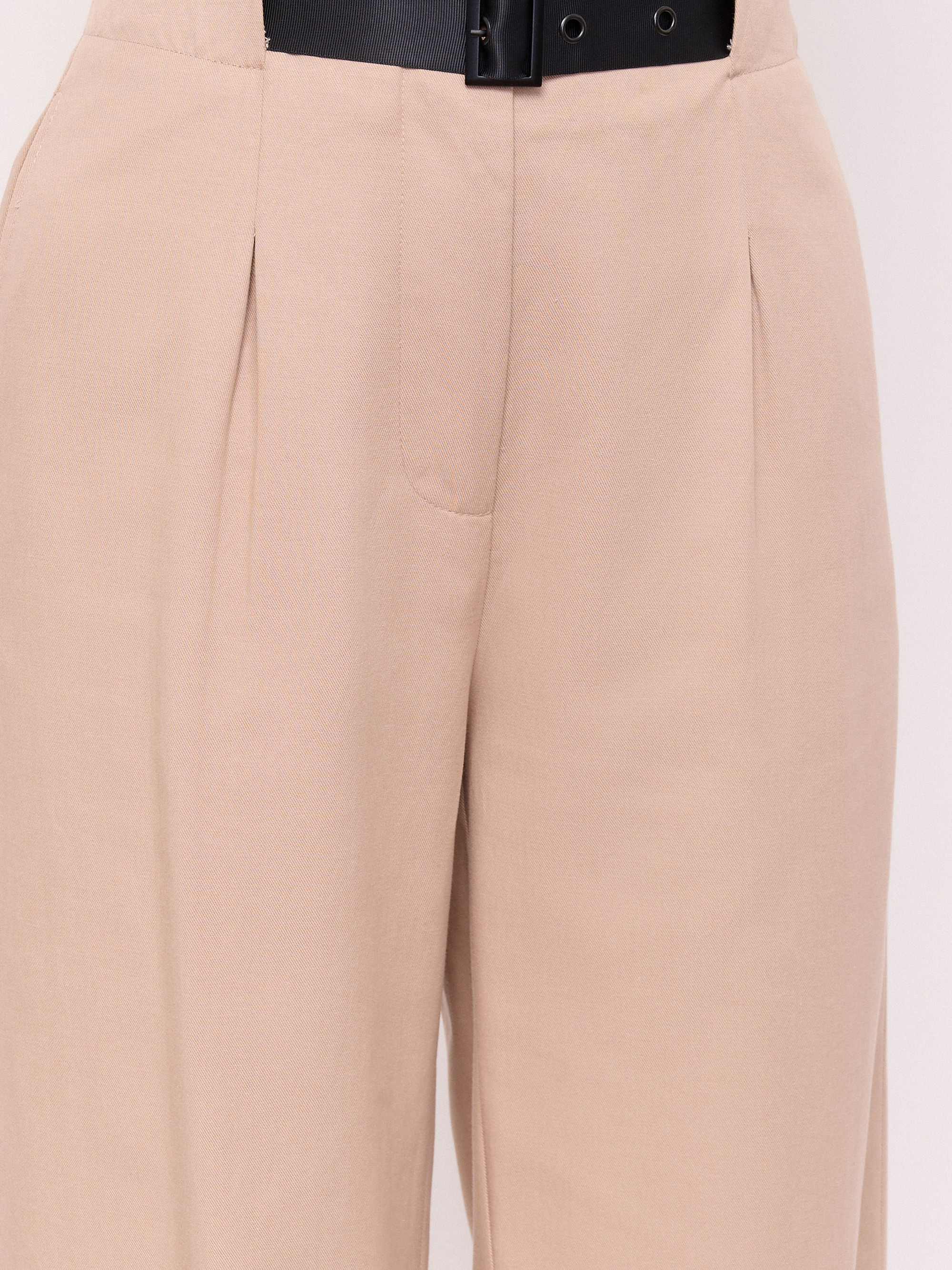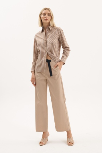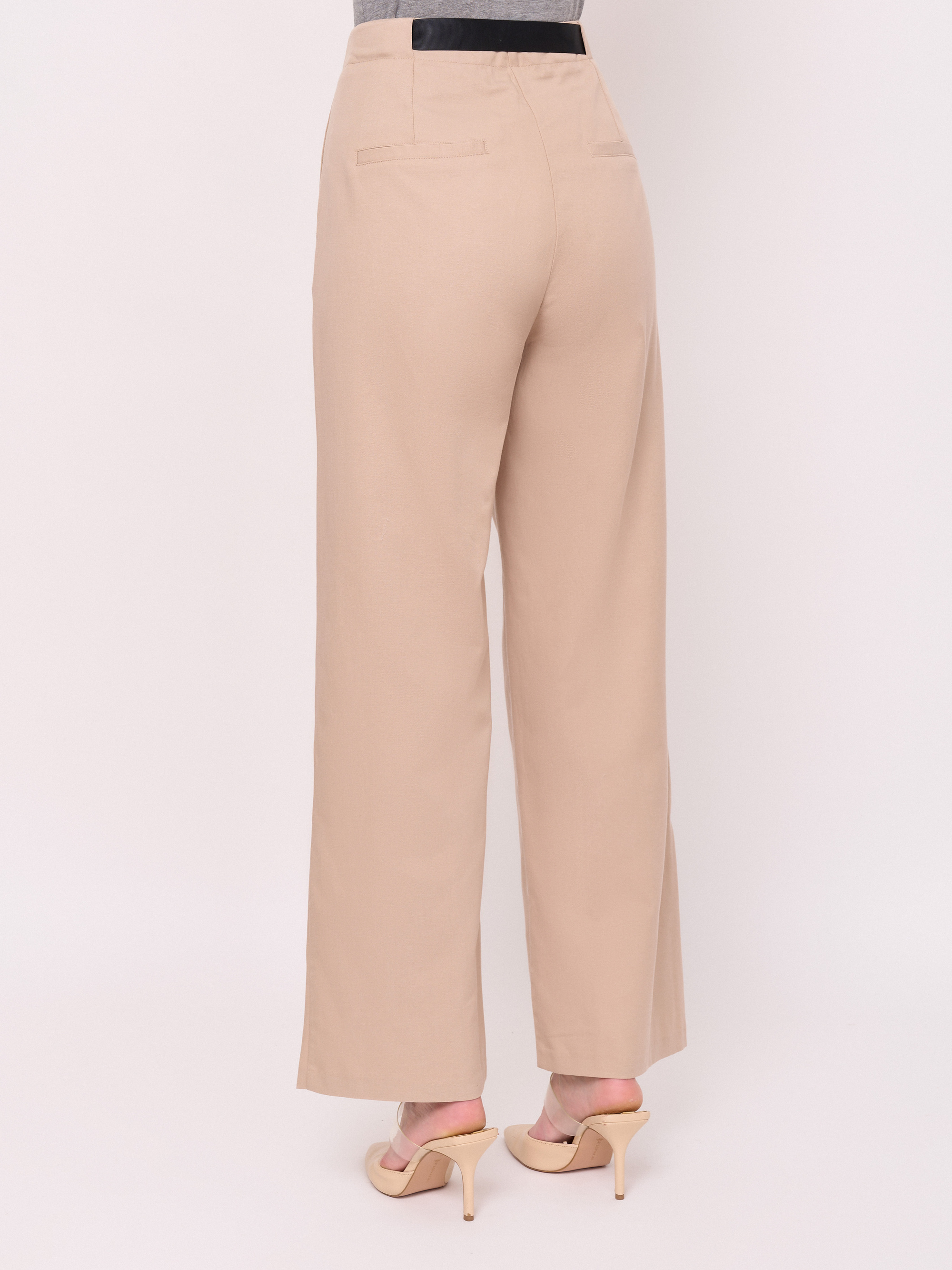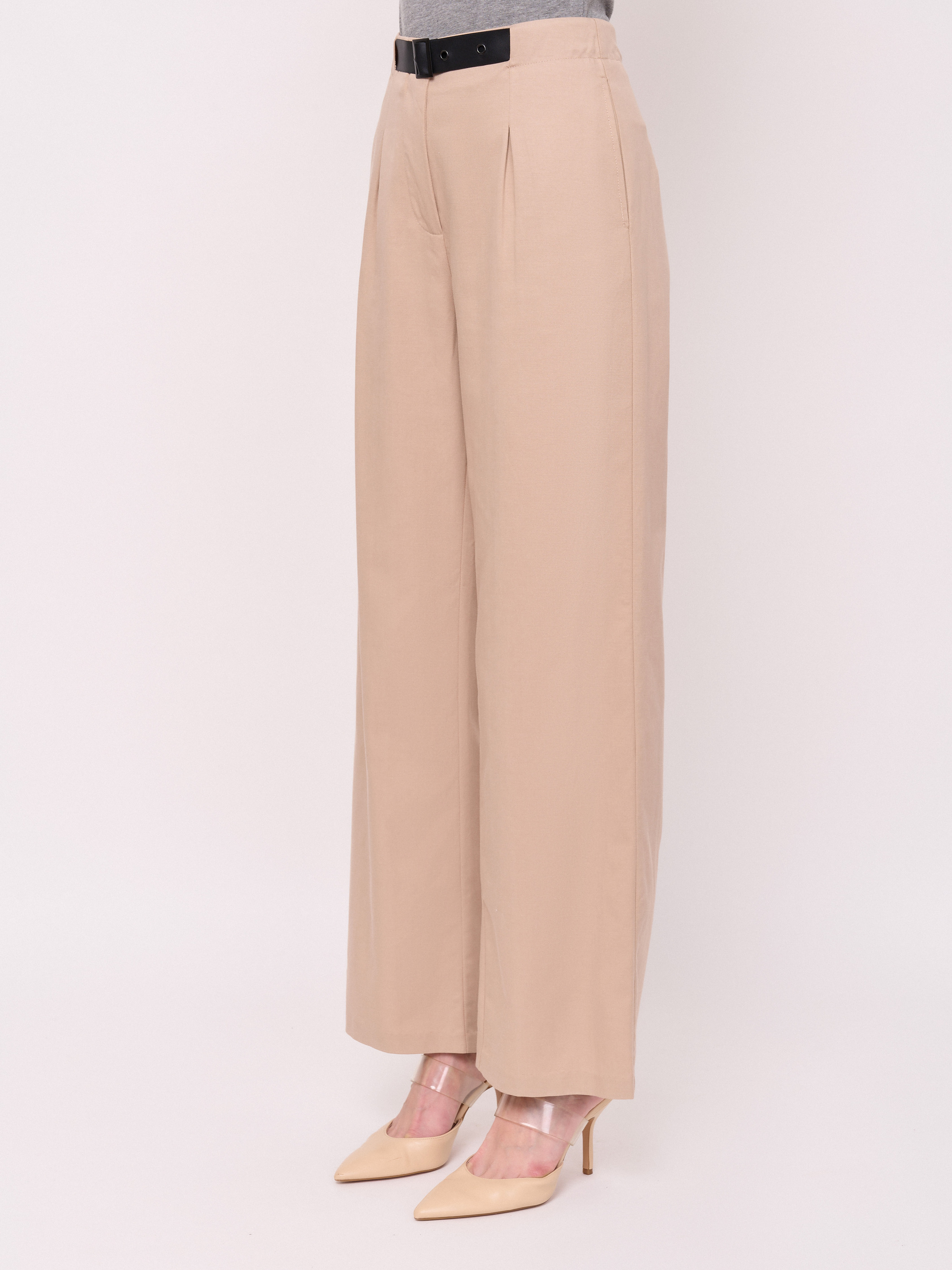 Детали: застежка молния, без рисунка, карманы в шве, крой брючин широкий, посадка средняя, текстильный ремень, складки. Длина брючин: 76. Идеально с жакетом UNQ (арт. 24110010144)