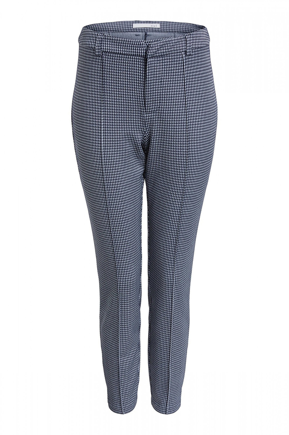 Прямые брюки средней посадки - совсем не скучная модель! Укороченная длина брюк позволяет продемонстрировать модную обувь. Стрелки делают образ более строгим. Классический клетчатый орнамент "гусиная лапка" является одним из современных трендов. В сочетании с лаконичным верхом эти брюки станут модным акцентом в вашем образе.