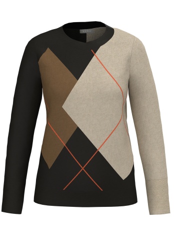 Джемпер свободного покроя великолепно дополнит ваш осенний образ. Круглый вырез горловины, рукава полной длины со спущенным плечом. Новая интерпретация узора с ромбами притягивает восхищенные взгляды. Смесовый материал с вискозой и шерстью в составе приятен к телу и обеспечивает сохранение тепла.