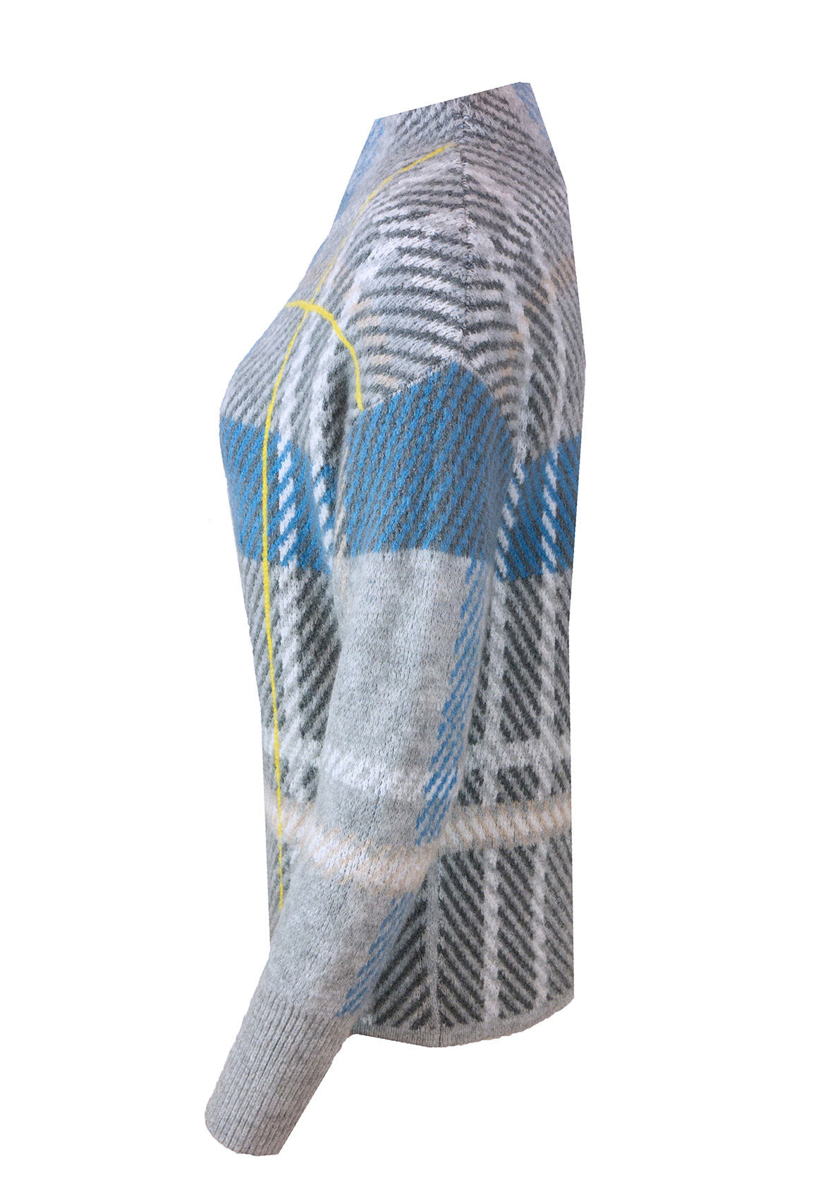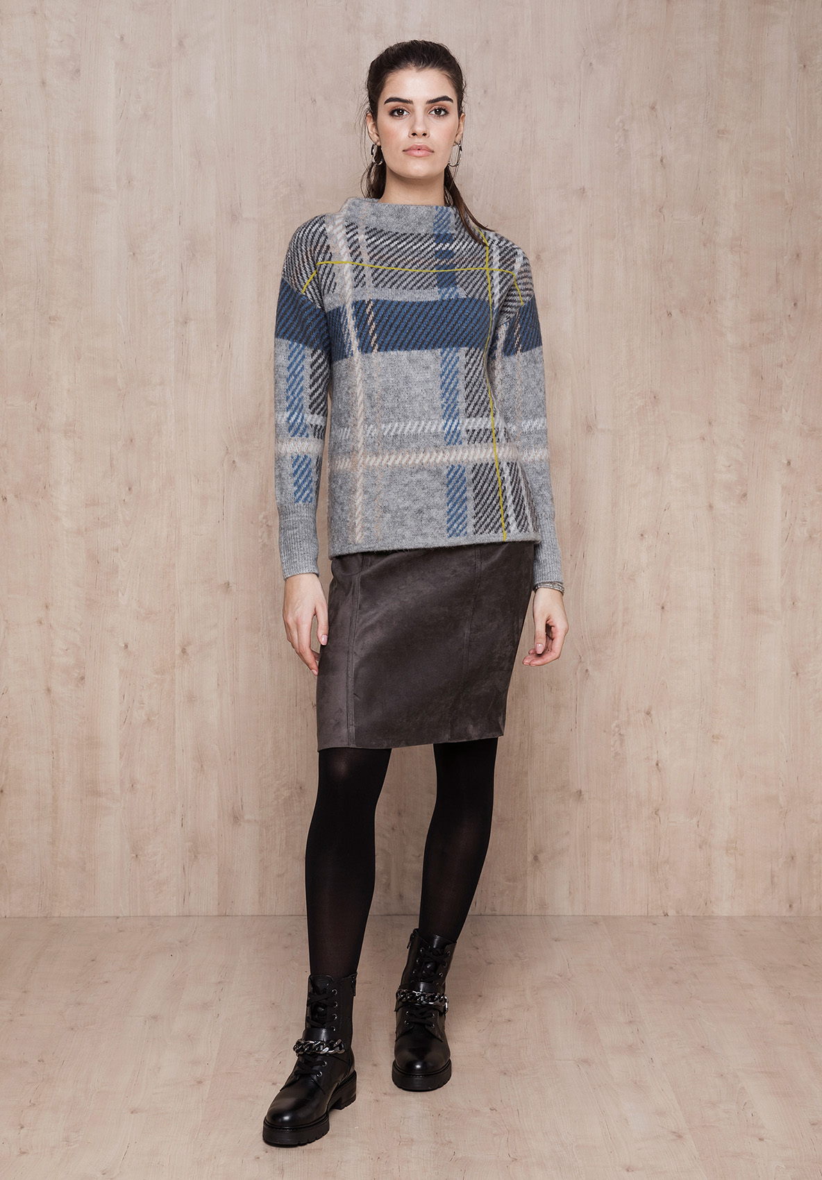 Джемпер свободного покроя великолепно дополнит ваш осенний образ. Вырез горловины "воронка", рукава полной длины со спущенным плечом. Новая интерпретация узора в клетку притягивает восхищенные взгляды. Смесовый материал приятен к телу и обеспечивает сохранение тепла.