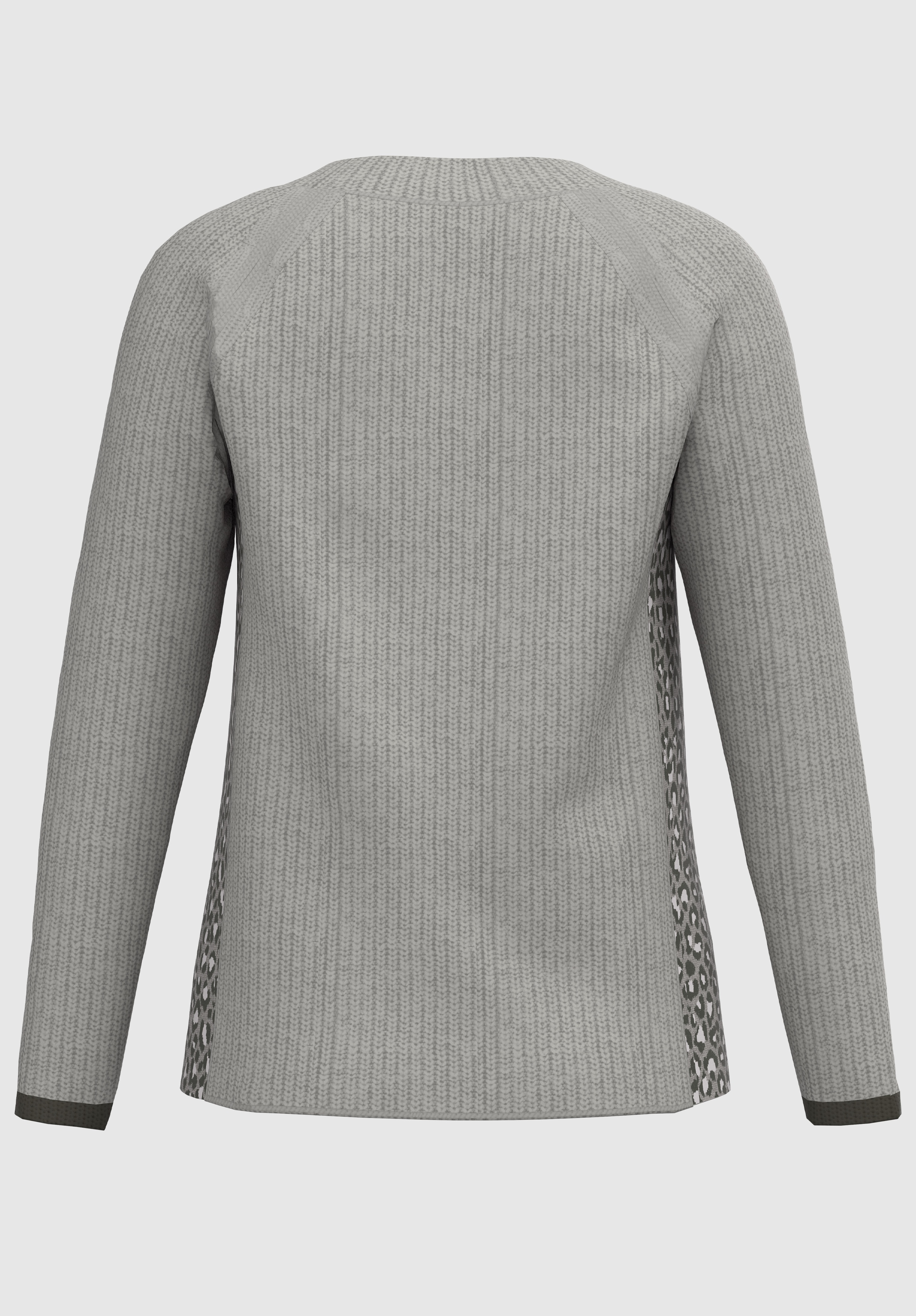 На сайте указаны российские размеры. Свитер крупной вязки с животным принтом сбоку. Высококачественная хлопковая смесь для удобной посадки. Боковая молния и контрастный низ рукавов. Круглый вырез, прямой крой, слегка удлиненная спинка. Длина джемпера в 44 размере - 62 см.