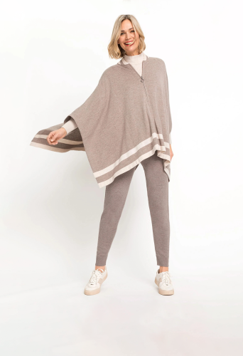 На сайте указаны российские размеры. Классическое пончо с изюминкой: застежка-молния спереди и полосатая отделка на шее и по низу — это непринужденный стиль, который можно носить постоянно.