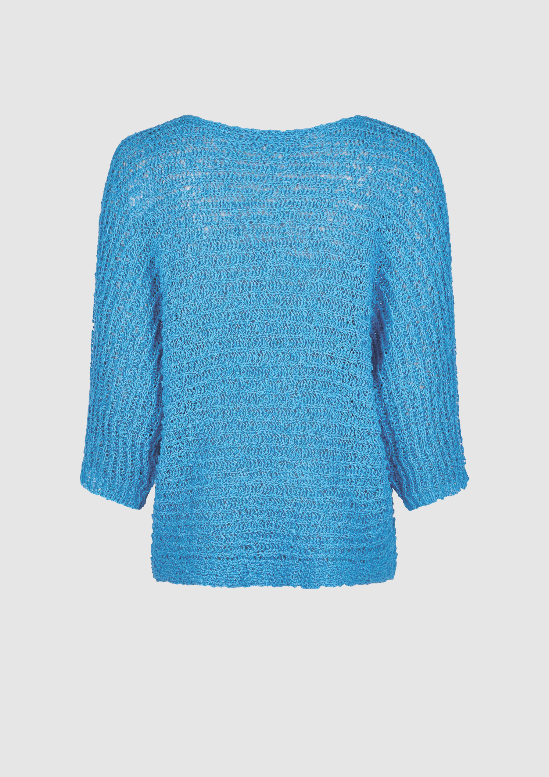 Свитер «крыло летучей мыши» изготовлен из высококачественной пряжи букле, очень мягкой на ощупь. Он сделан из хлопка от Better Cotton Initiative. Вырез «лодочка» и повседневная ширина так же впечатляют, как и модный горизонтальный вязаный узор