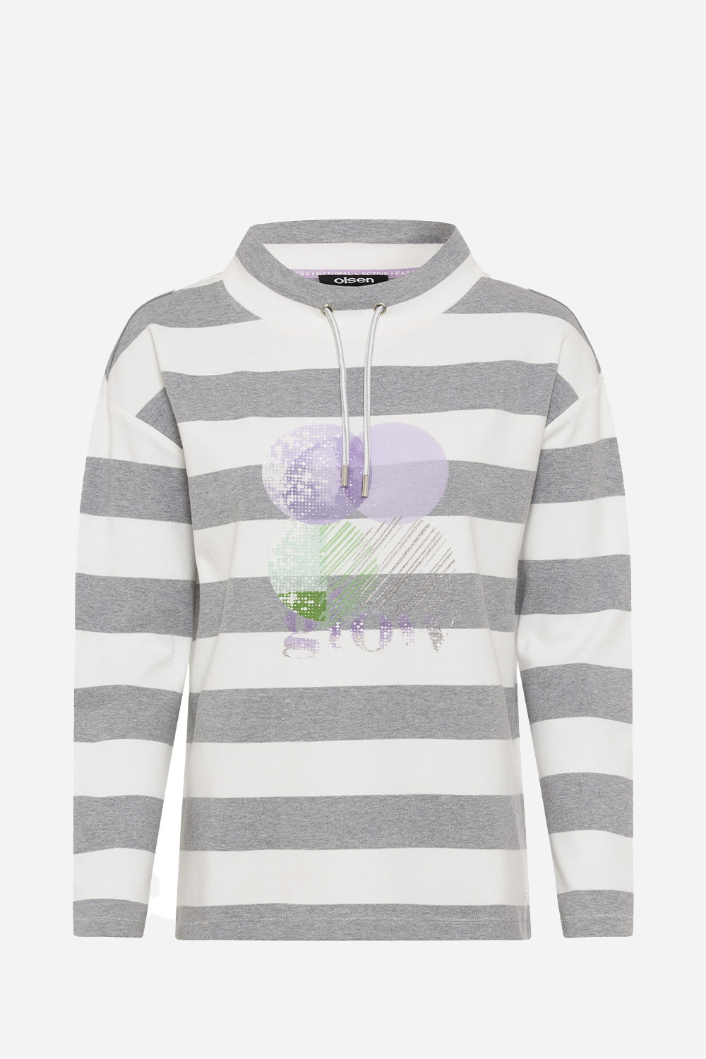 Джемпер включает функциональную завязку на вырезе, широкие полосы и абстрактный принт, украшенный прозрачными стразами, придающими легкое сияние. Изготовлен из чистого хлопка, он мягок для кожи, обеспечивает воздухопроницаемость и комфорт. В нашей современной модели Cora крой свободно и непринужденно прилегает к телу.