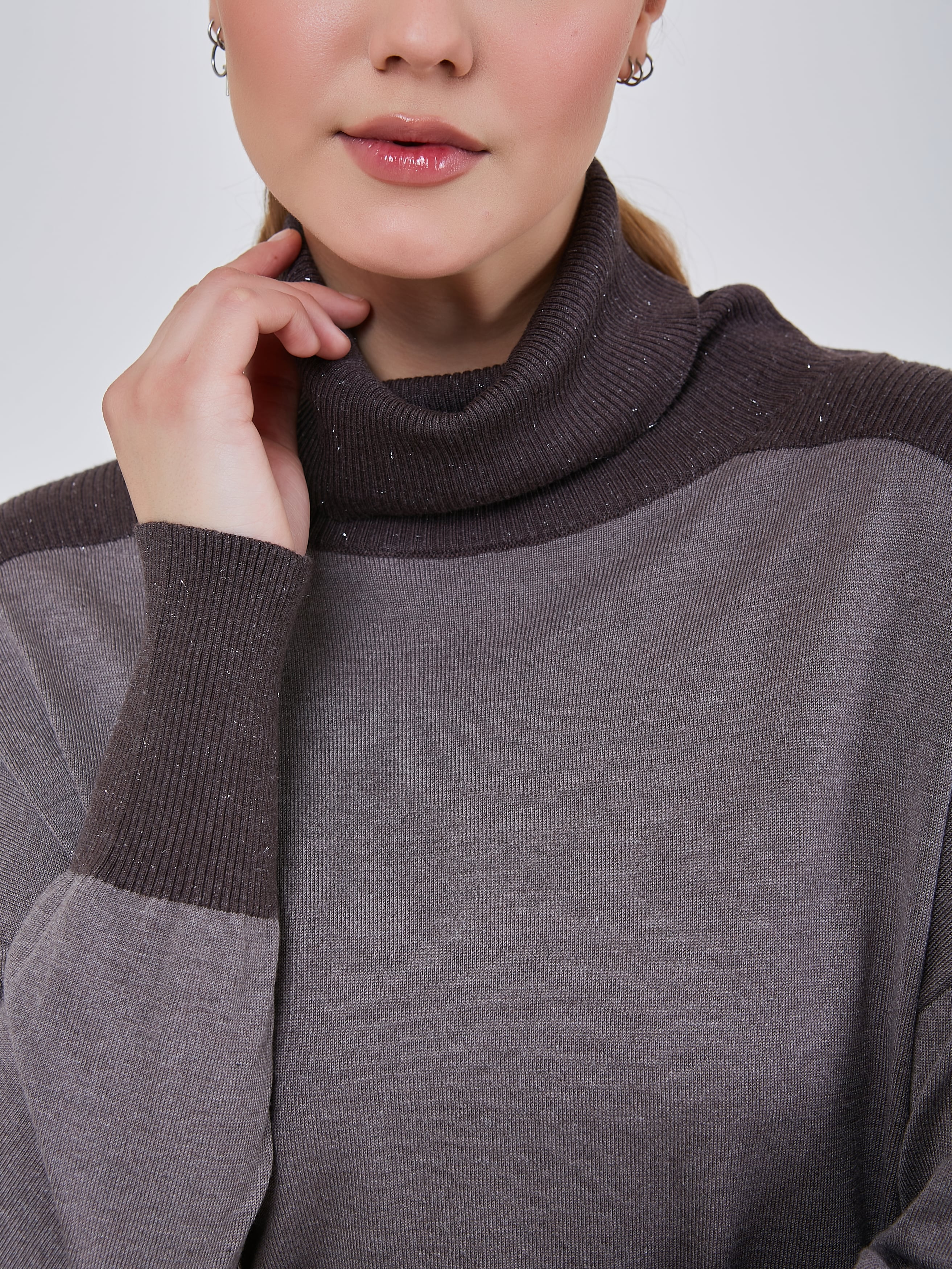 Оригинальный свитер с высоким воротом и акцентами по линии плеч и бёдер и манжет.Осень-Зима'25/26. Капсула "Вино из одуванчиков"