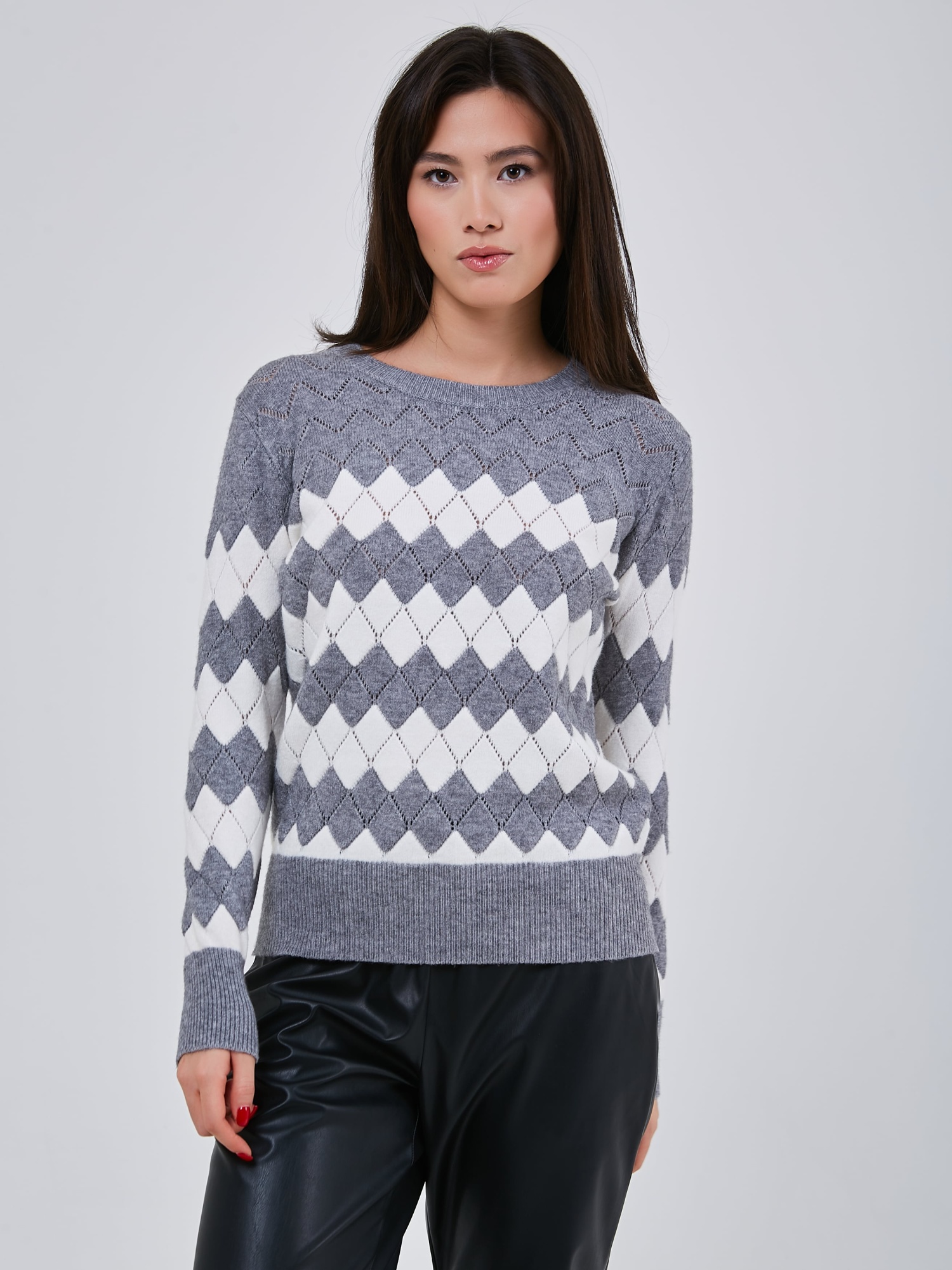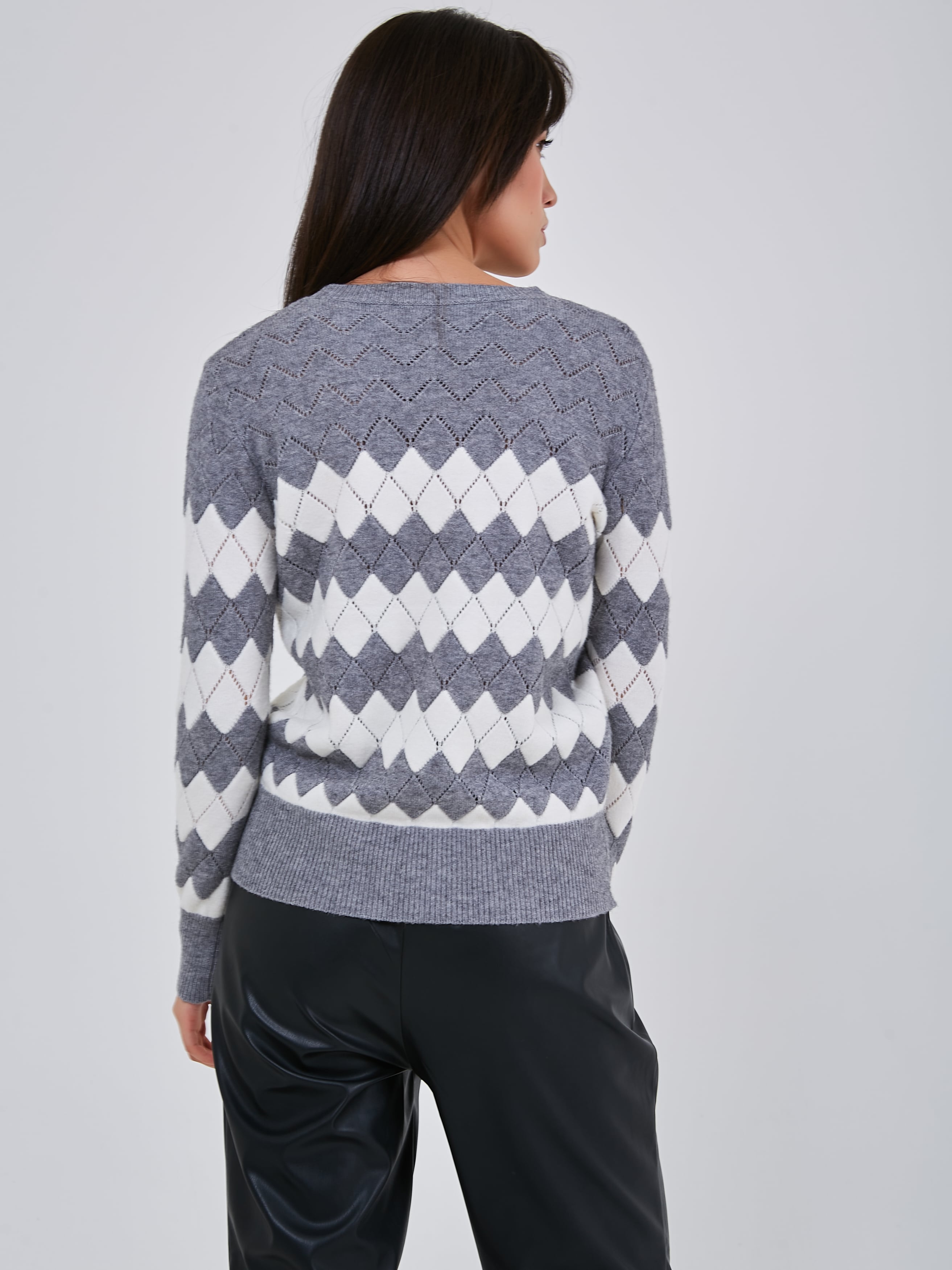 Ажурный свитер с узором в виде ромбов "Аргайл". Коллекция Осень-Зима 2024-2025. Капсула "Гостья из будущего".