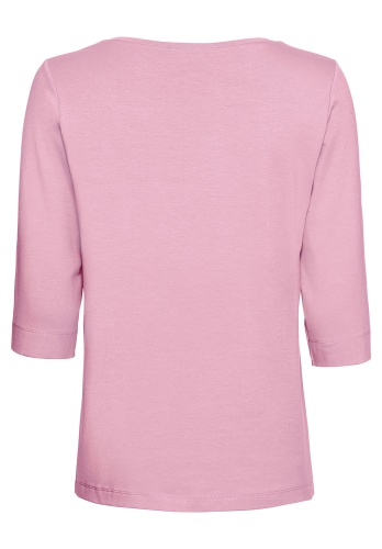 Простая футболка прямого покроя - обязательный элемент базового гардероба. Приятный к телу материал из смеси хлопка, модала и эластана обеспечит комфорт и идеальную посадку. Рукав 2/3 и широкая круглая горловина придают модели непринужденный вид. Эта футболка подходит как для офиса, так и для прогулки.