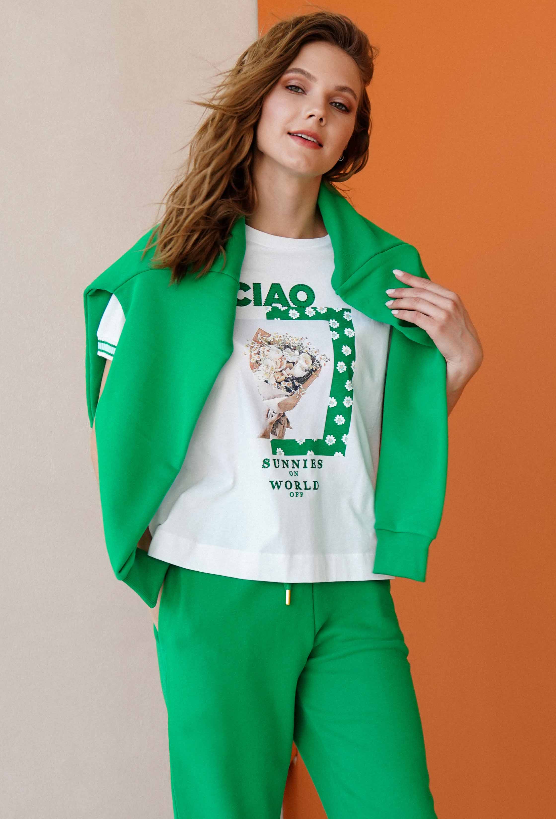 Классическа футболка с принтом трендового цвета дополнит любой образ этой весной и летом.