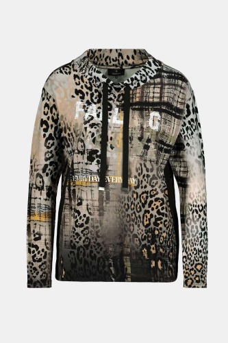 Джемпер в анималистичном принте – яркий атрибут трендового образа. Воротник-стойка на кулиске, втачной рукав полной длины. Боковой шов украшает черная лента.