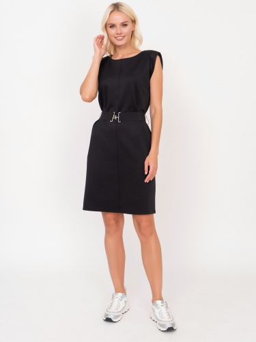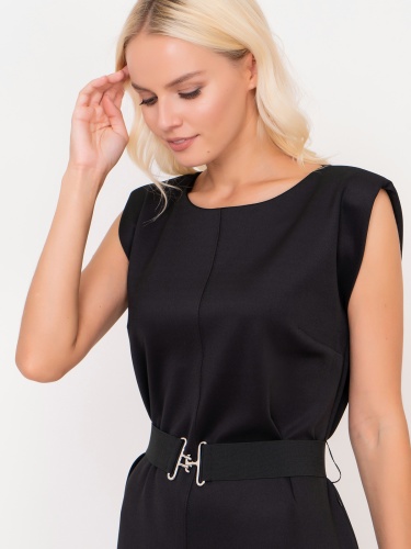 Черное мини-платье прямого кроя – универсальный вариант для любого повода – в офис, на встречу, вечернее мероприятие. Круглый вырез горловины, рукава отсутствуют.