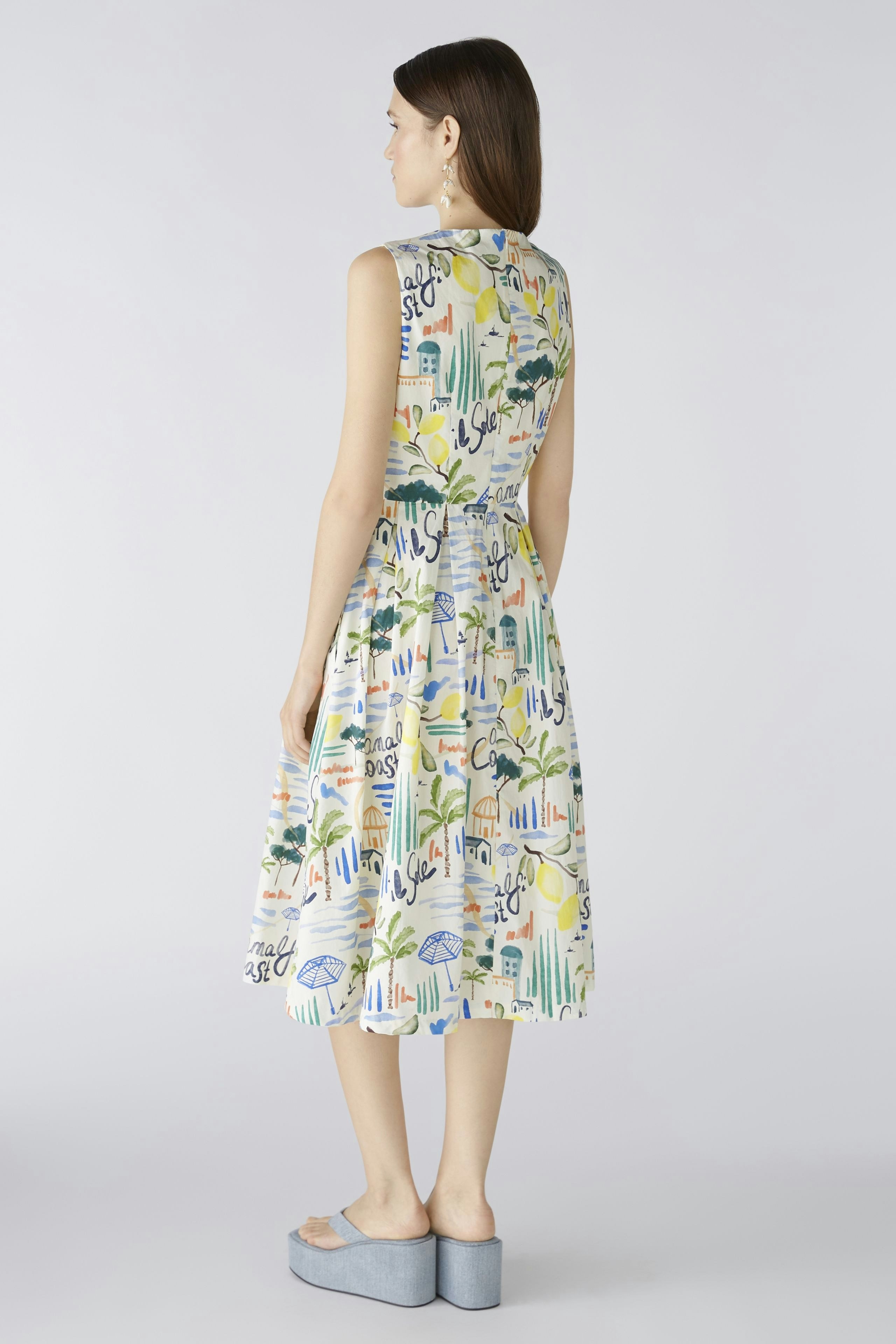 Это летнее платье - эксклюзивный принт oui, вдохновленный типичной атмосферой отдыха на ривьере. Чистый хлопок, принт по всей поверхности. Приталенный топ в сочетании с расклешенной юбкой. Круглый вырез горловины с мелкошовной молнией сзади. Верх полностью на подкладке. Два боковых кармана. Длина для размера 42: 118 см.