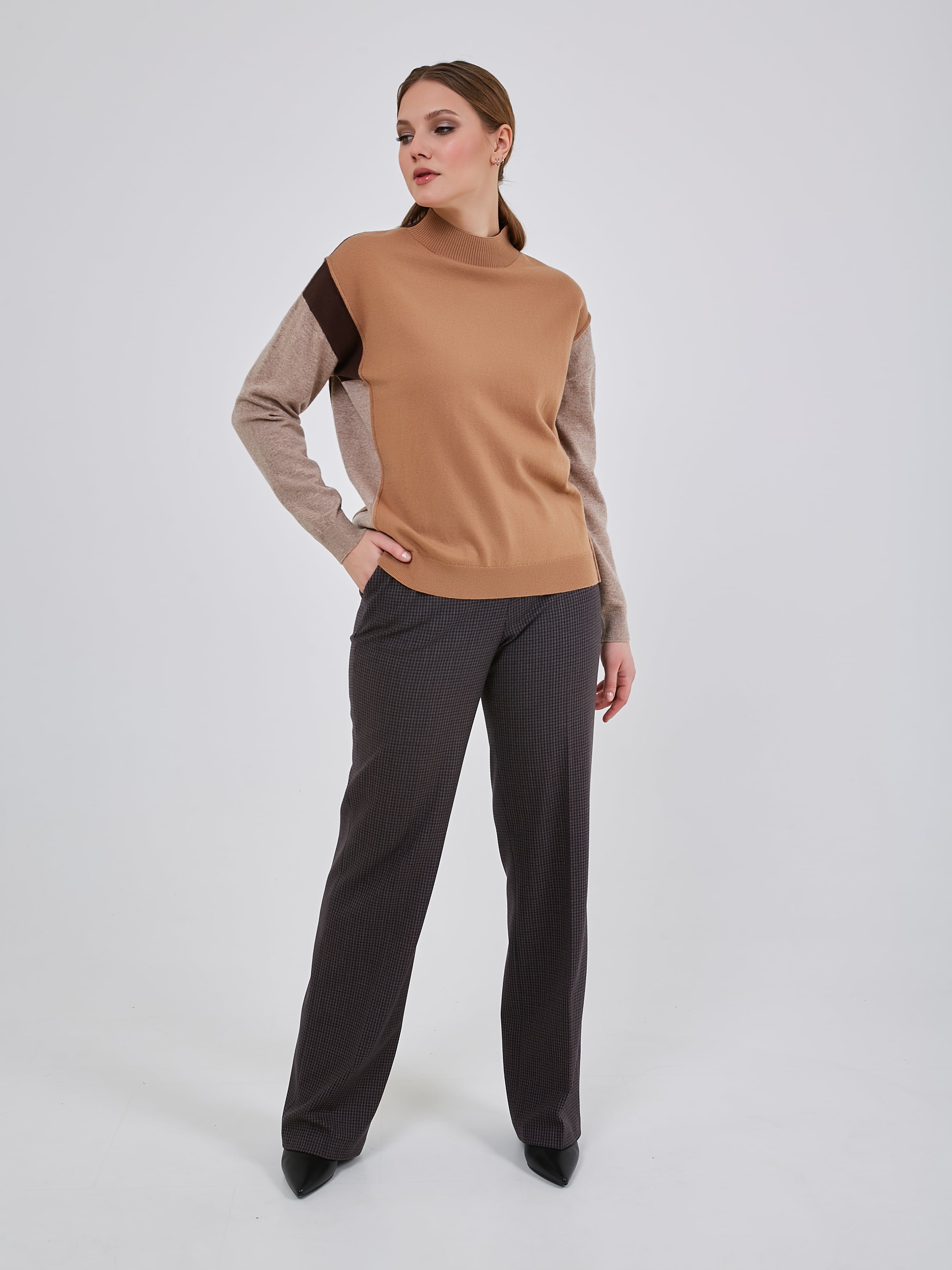 Джемпер с ассиметричным цветовым решением. Воротник- стойка эластичной вязки.Осень-Зима'25/26. Капсула "Вино из одуванчиков"