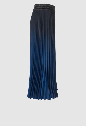 Юбка длиной до щиколотки подчеркивается складками, которые в сочетании с эффектом омбре создают чрезвычайно тонкую игру цветов.