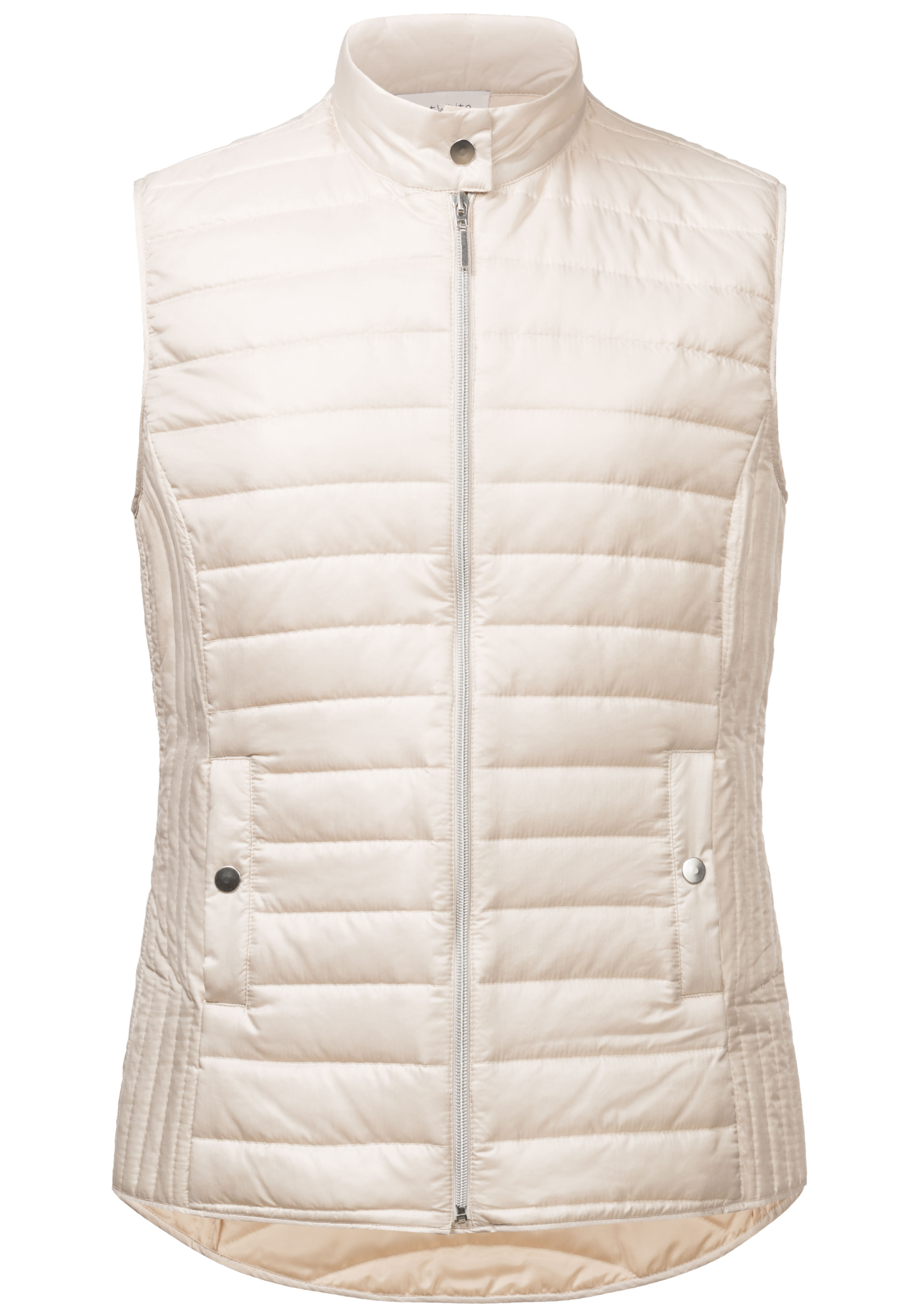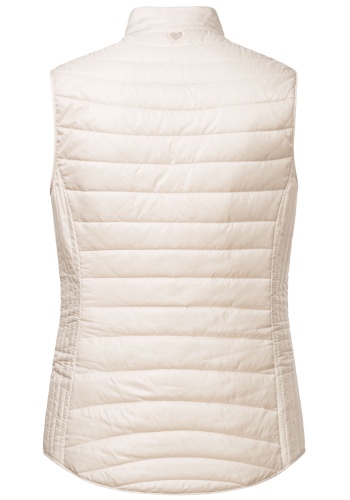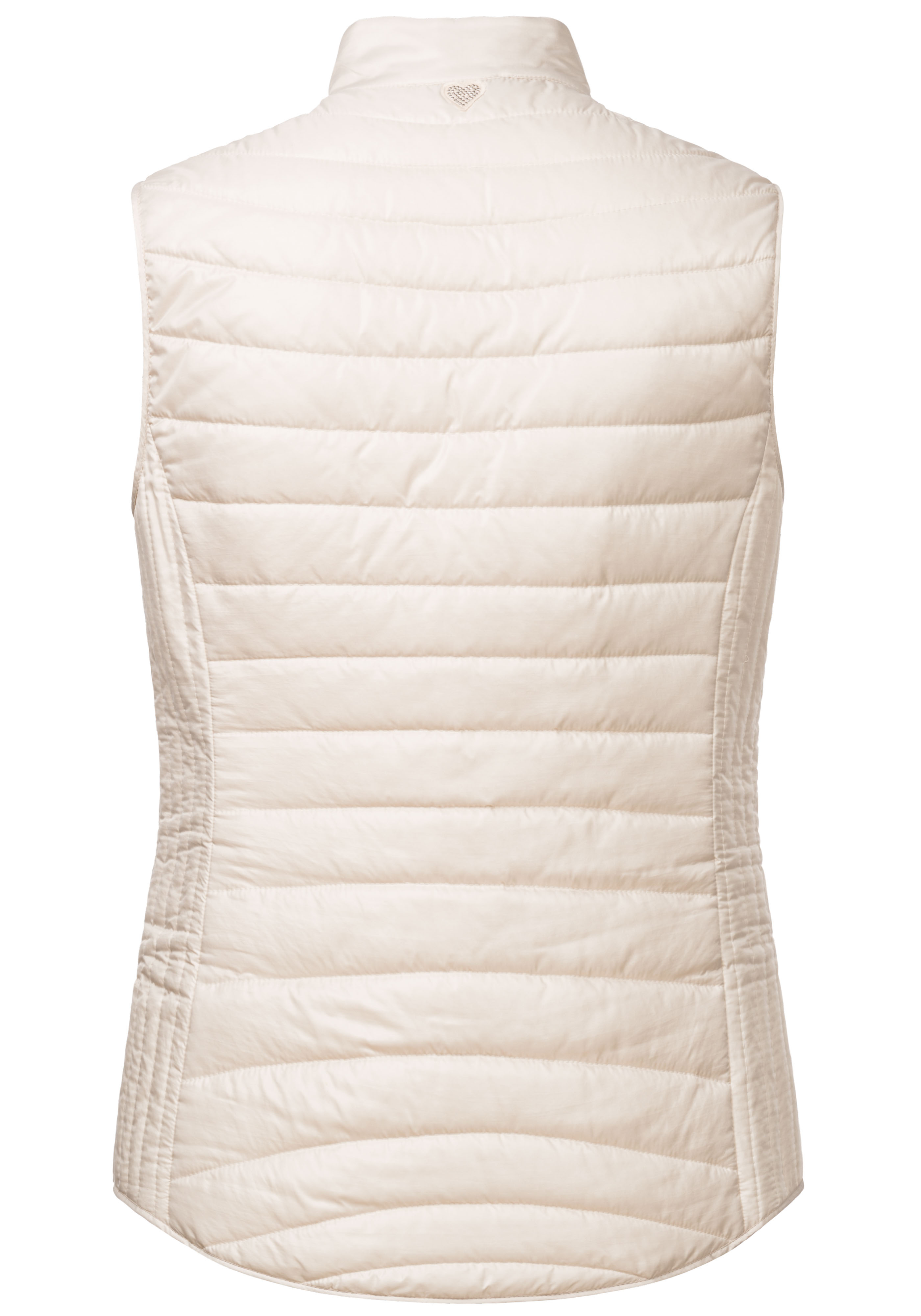 На сайте указаны российские размеры. Женственный спортивный стеганый жилет из легкого высококачественного материала. Жилет впечатляет своим лаконичным видом благодаря горизонтальной стежке, которая сочетается с продольной стежкой по бокам. Эта комбинация также делает их фигуру льстивой. Его можно комбинировать по-разному, и благодаря насыщенному розовому цвету он придает каждому образу что-то свое. Женственный спортивный образ подчеркивают два боковых кармана, которые можно застегнуть на кнопку. Еще одним привлекательным элементом жилета является тонкое блестящее сердце под воротником-стойкой на спине. Модель ростом 177 см Измерения для 44 размера: Окружность груди: 103 см Талия: 96 см Бедра: 115см Длина по спинке: 68 см