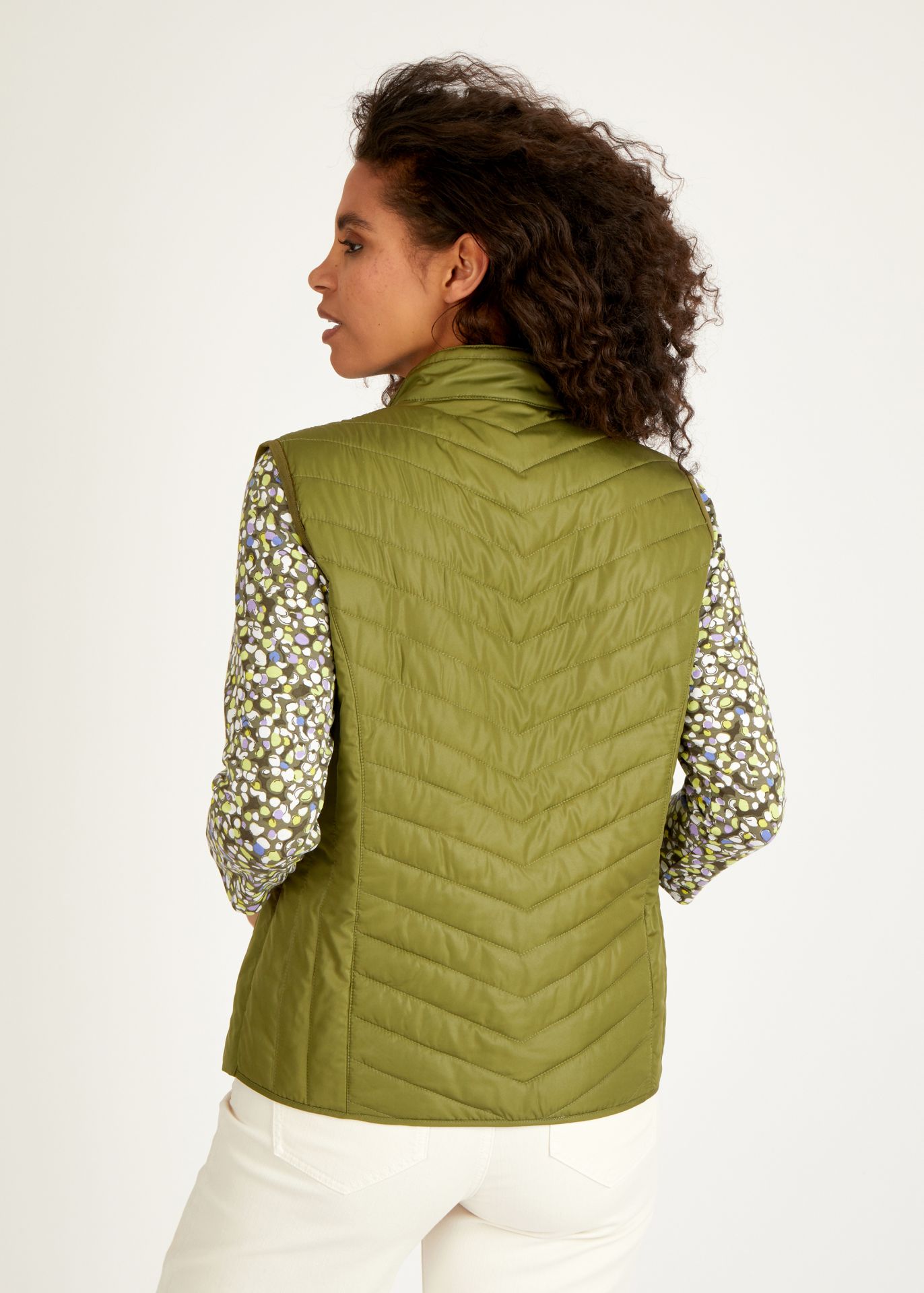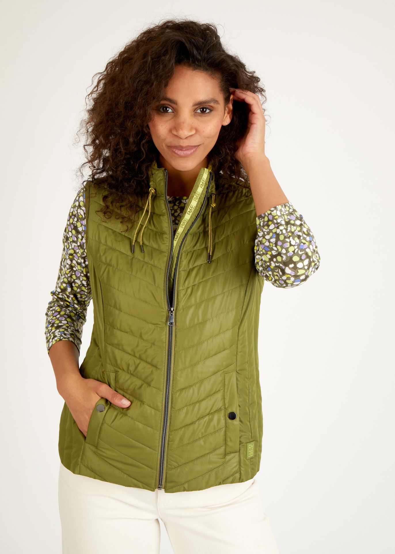 На сайте указаны российские размеры. Этот стеганый жилет с воротником-стойкой и ширинкой на молнии идеально подходит для всех видов активного отдыха. Современный воротник-стойка с кулиской и прорезные карманы на пуговицах придают безрукавке спортивный характер. Изготовлен из утепляющей полиэфирной ткани. Продемонстрируйте свое чувство стиля с помощью этой модной вещи. Рост модели 176 см. Длина по спинке от плеча: 64 см.